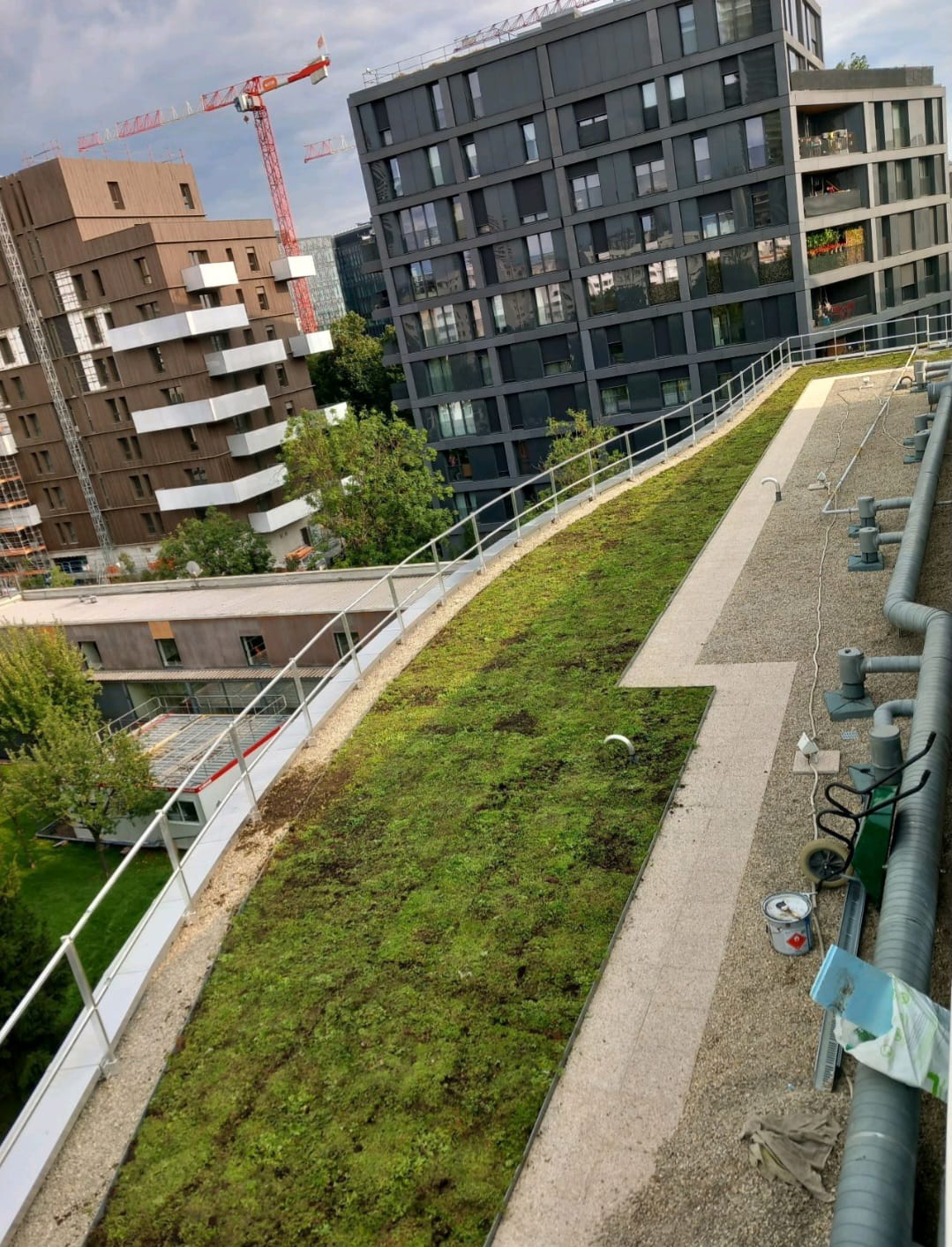 Système complet d'étanchéité anti-racines avec drainage et substrat pour végétalisation extensive ou intensive.