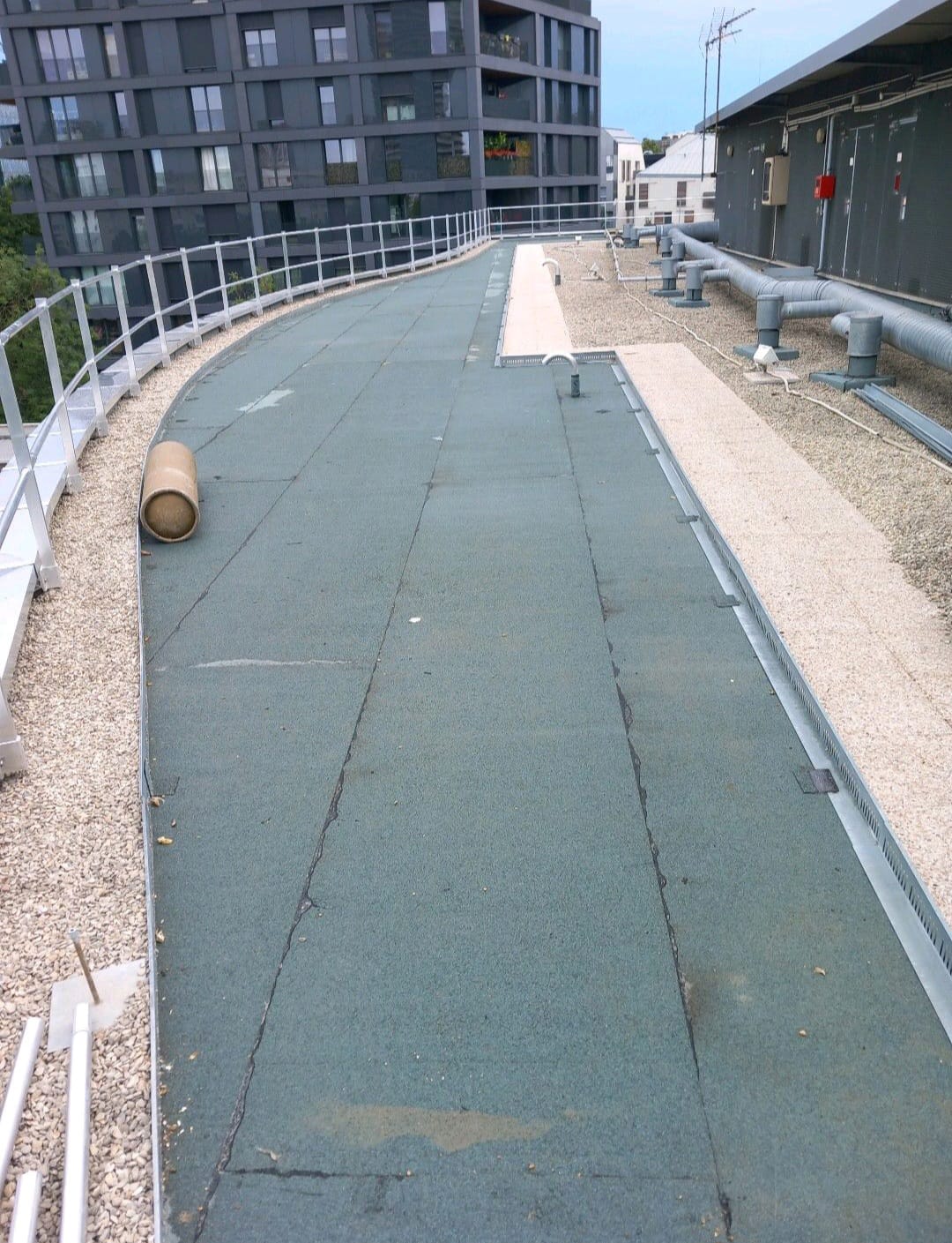 Étanchéité de toitures plates accessibles ou techniques. Systèmes multicouches bitumineux ou membranes synthétiques.